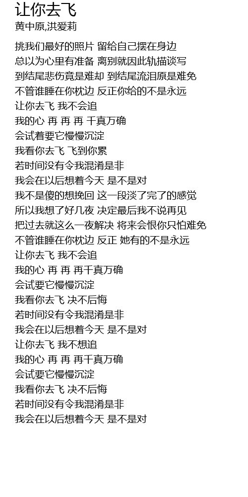 | [01:01.00] | 让你去飞 我不会追 |