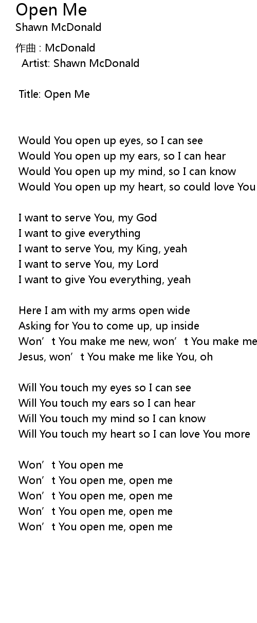 | Won' t You open me, open me |