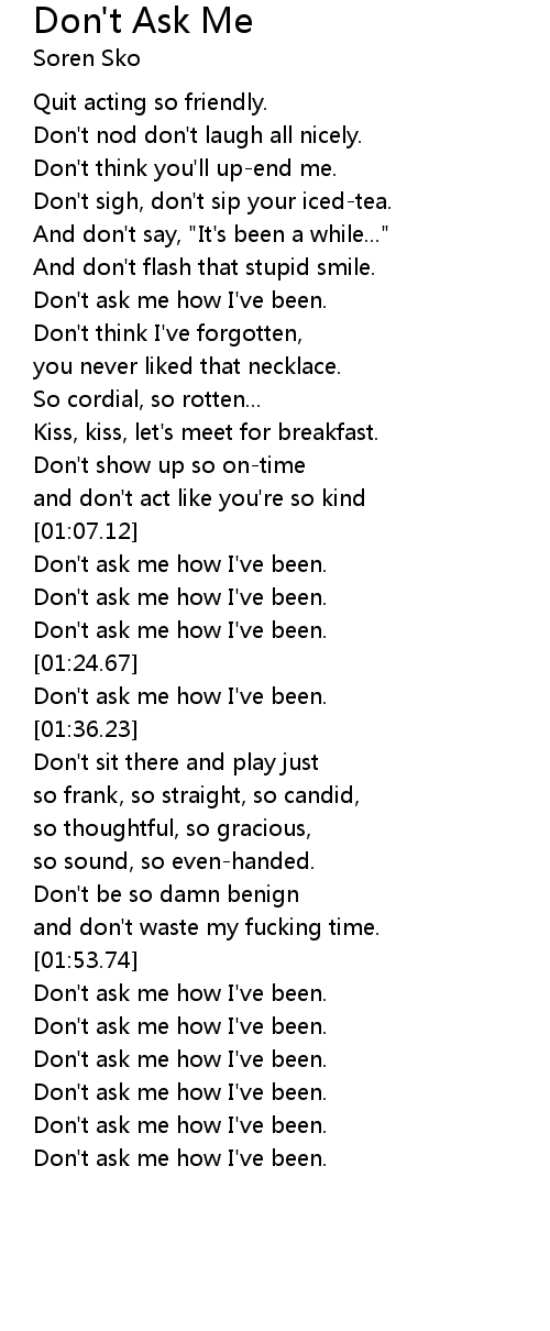 Don't ask me how I've been. |