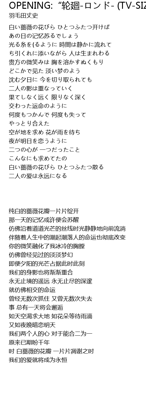 | Song | OPENING:“轮廻-ロンド- (TV-SIZE)” |