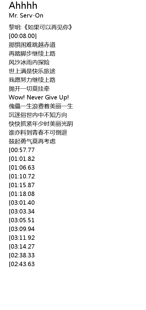 | [00:26.31] | Wow! Never Give Up! |