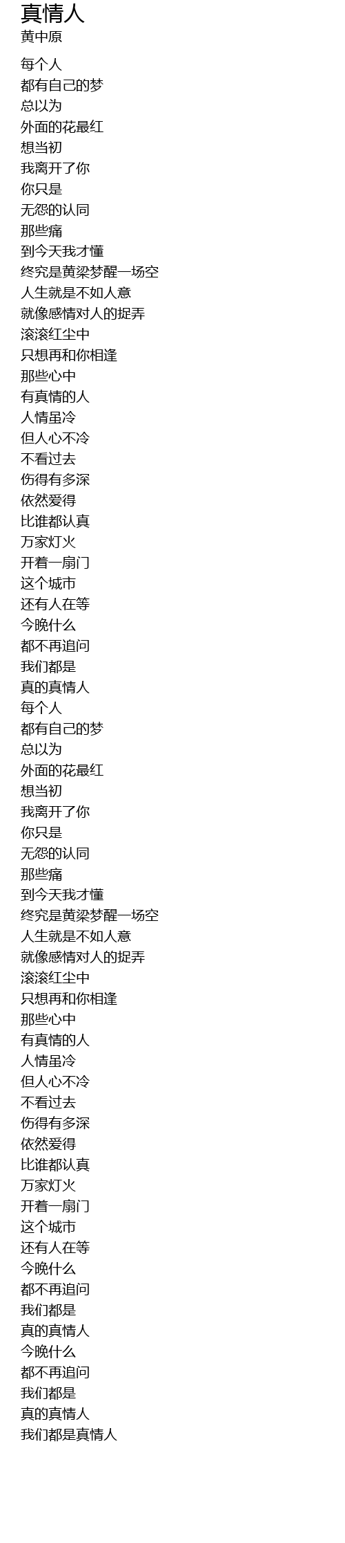 | [01:30.929] | 有真情的人 |