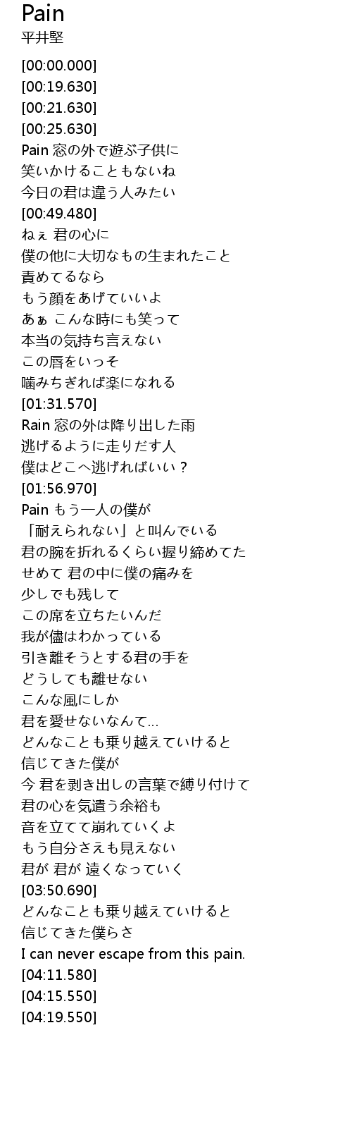 | [04:04.550] | I can never escape from this pain. |