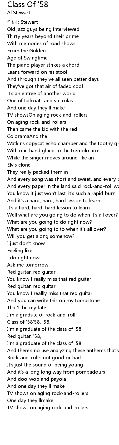| Song | Class Of '58 |
