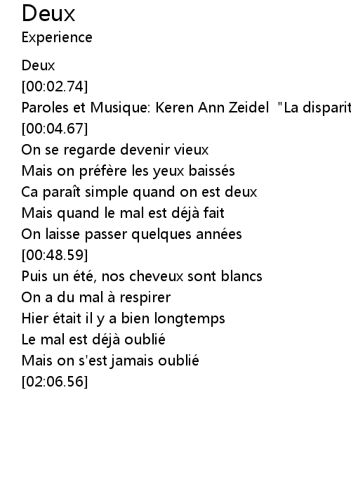 | [00:03.82] | Paroles et Musique: Keren Ann Zeidel "La disparition" |