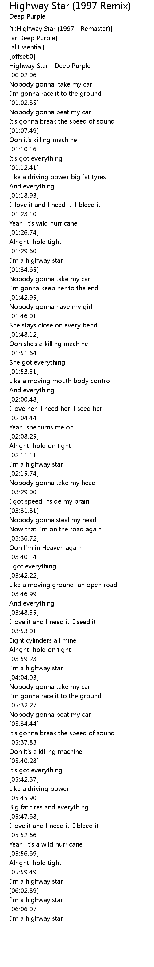 [ti:Highway Star (1997 - Remaster)] |