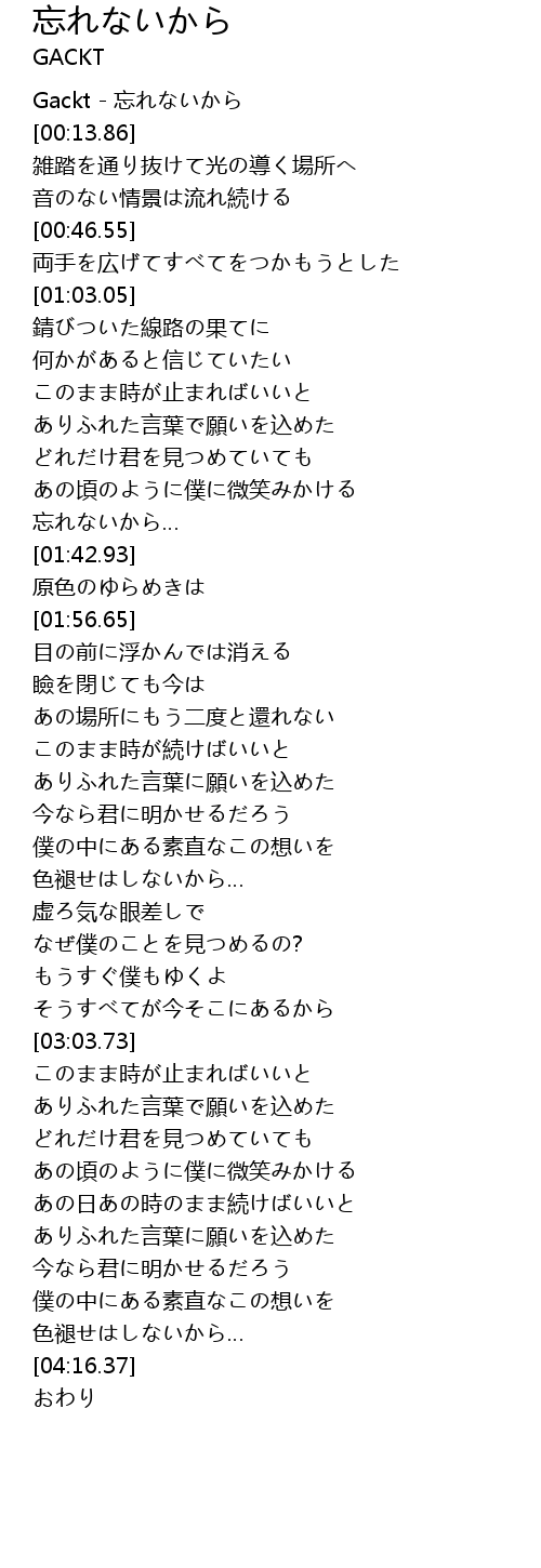 | [03:46.60] | あの日あの時のまま続けばいいと |