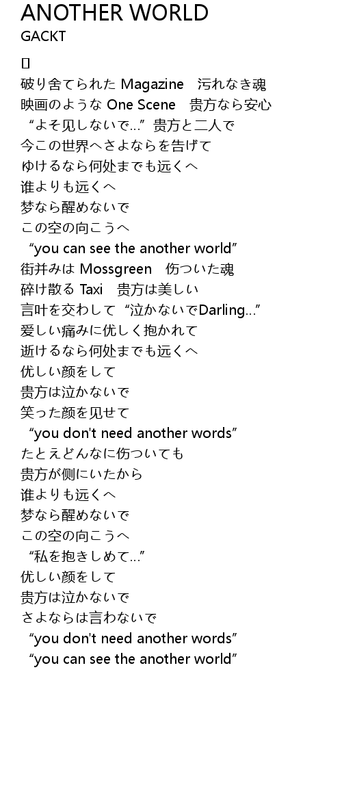 | Song | ANOTHER WORLD |