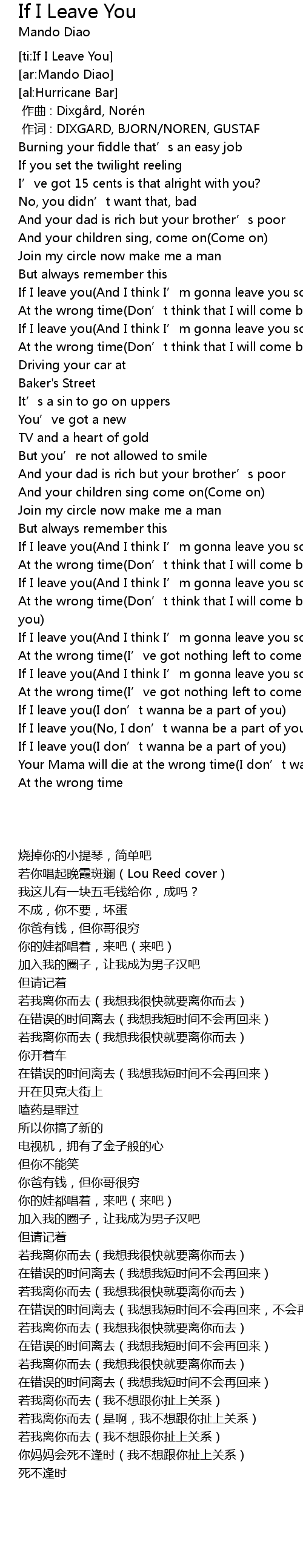 | [00:38.36] | If I leave you(And I think I’m gonna leave you soon) |