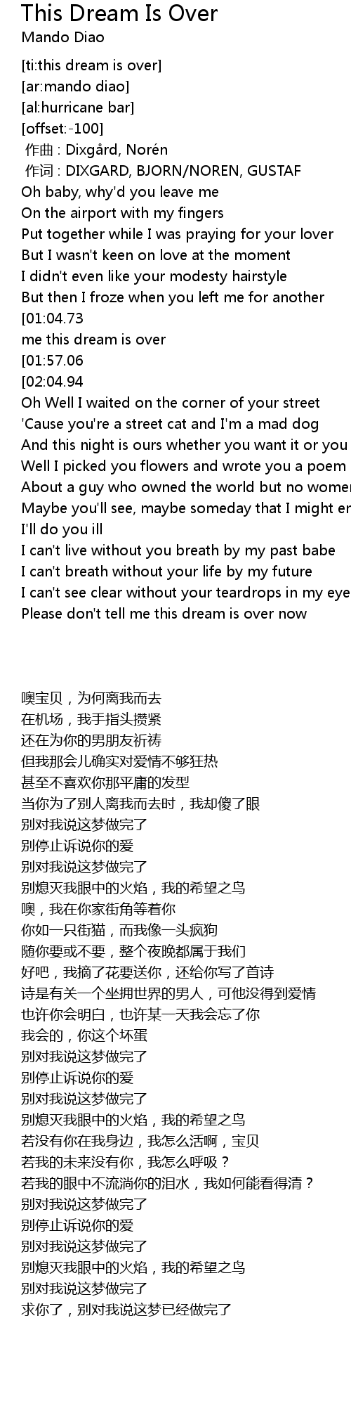 | [ti:this dream is over] | |