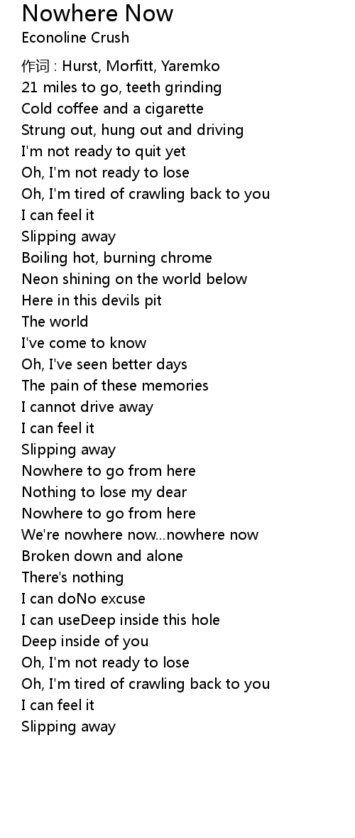 | Song | Nowhere Now |
