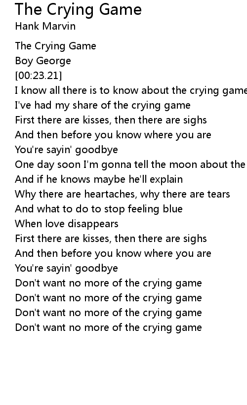 Don't want no more of the crying game |
