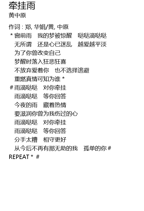 | *窗前雨 我的梦被惊醒 哒哒滴哒哒 | |