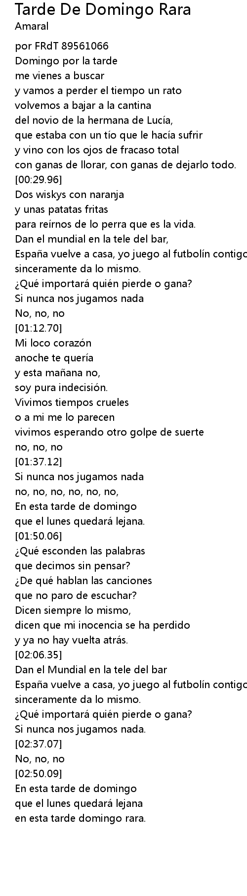 | [01:42.95] | En esta tarde de domingo |