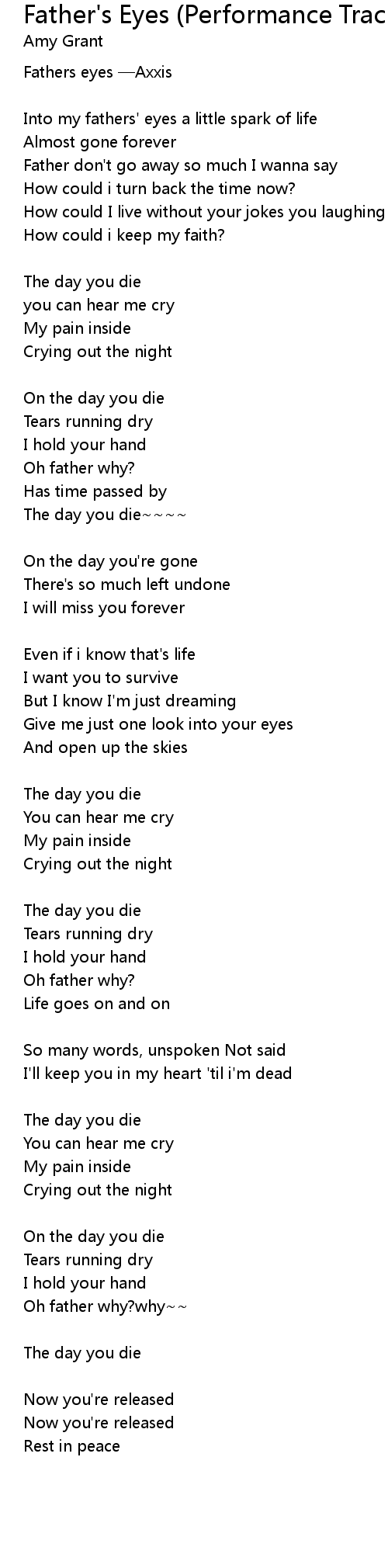 | Song | Father's Eyes (Performance Track In Key Of D With Background Vocals) |