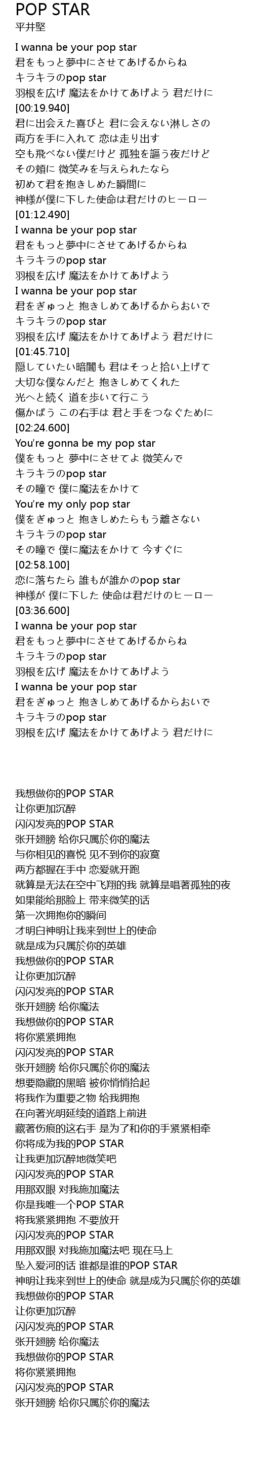 | [03:20.490] | lian luo shui shui pop star |