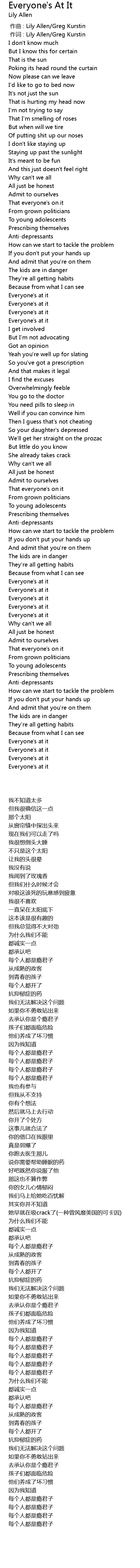 | [00:01.00] | zuò cí : Lily Allen Greg Kurstin |