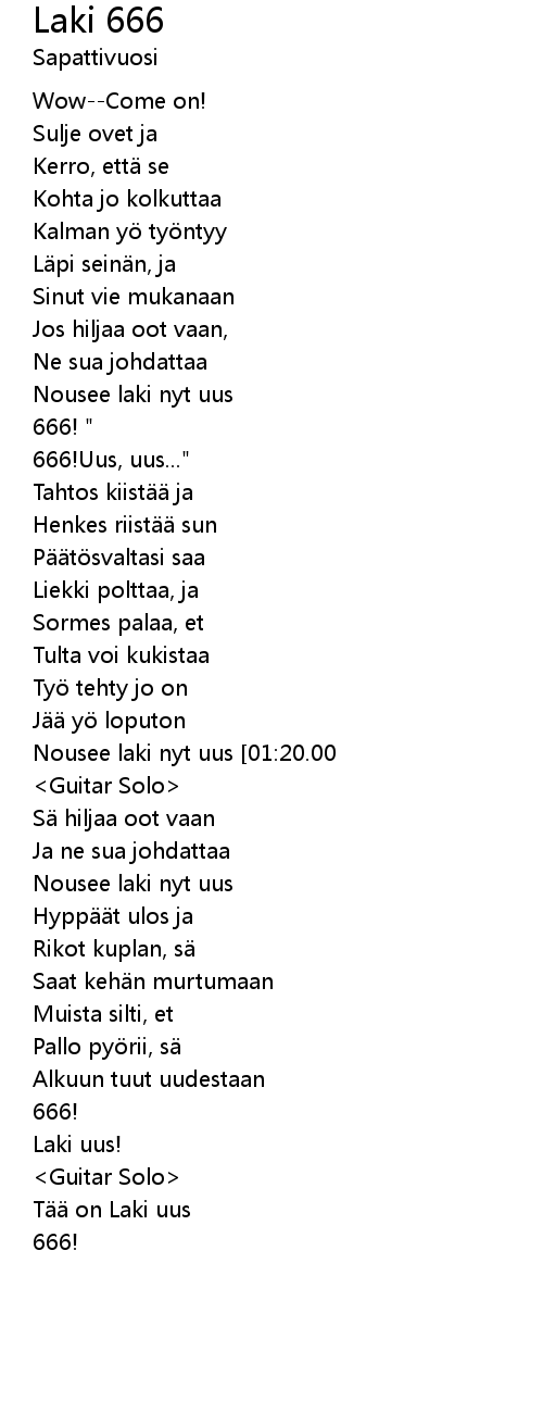 | [01:17.00]Nousee laki nyt uus [01:20.00] | 666! |