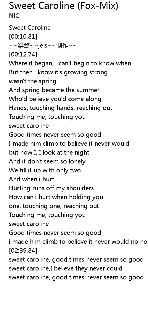 | [03:13.92] | sweet caroline, good times never seem so good |