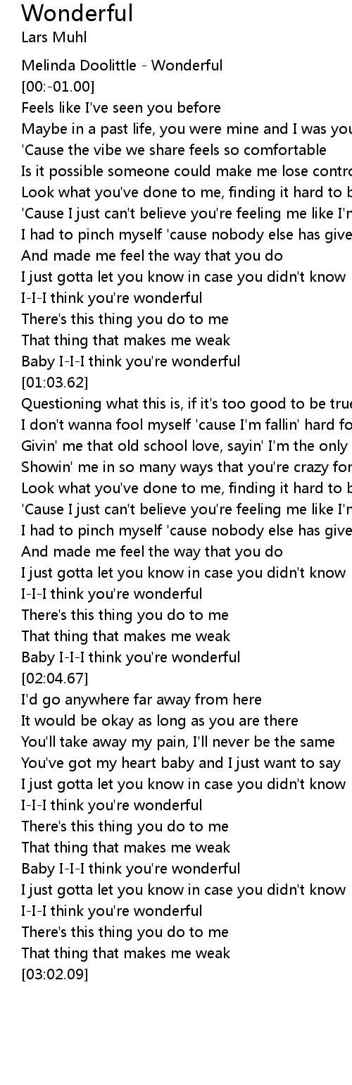 | [00:59.08] | Baby I-I-I think you're wonderful |