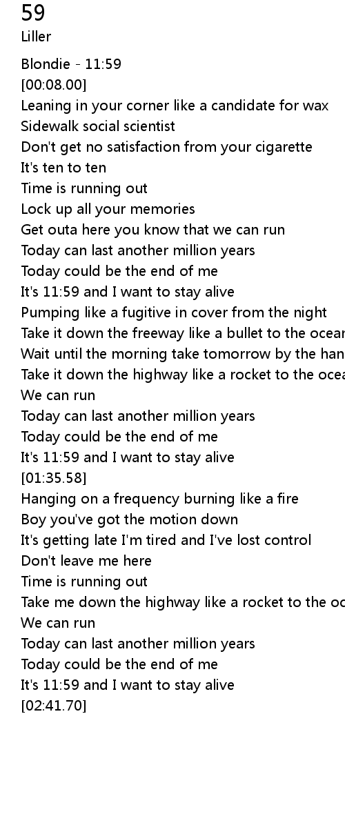 It's 11:59 and I want to stay alive |