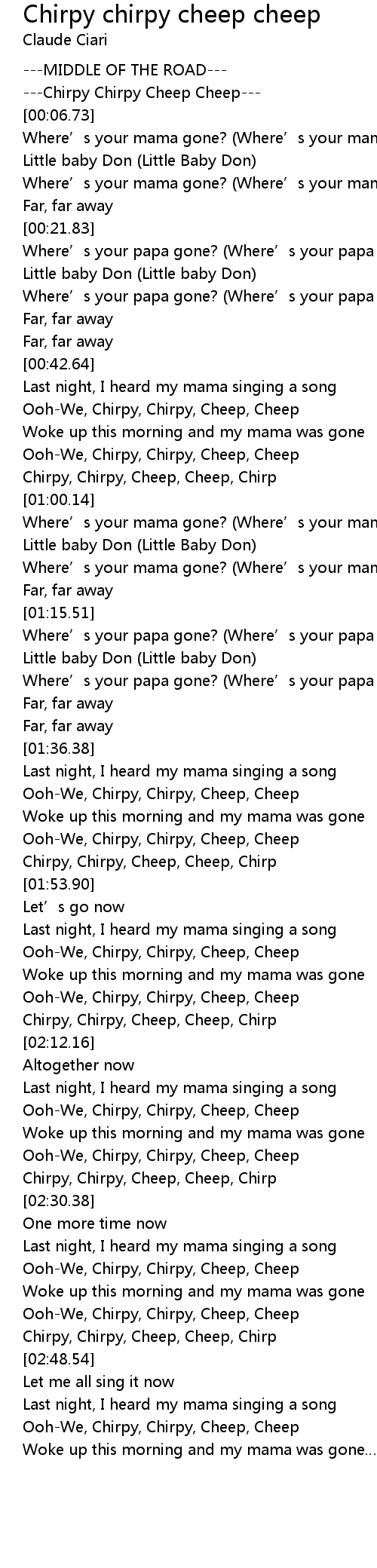 | [01:51.57] | Chirpy, Chirpy, Cheep, Cheep, Chirp |