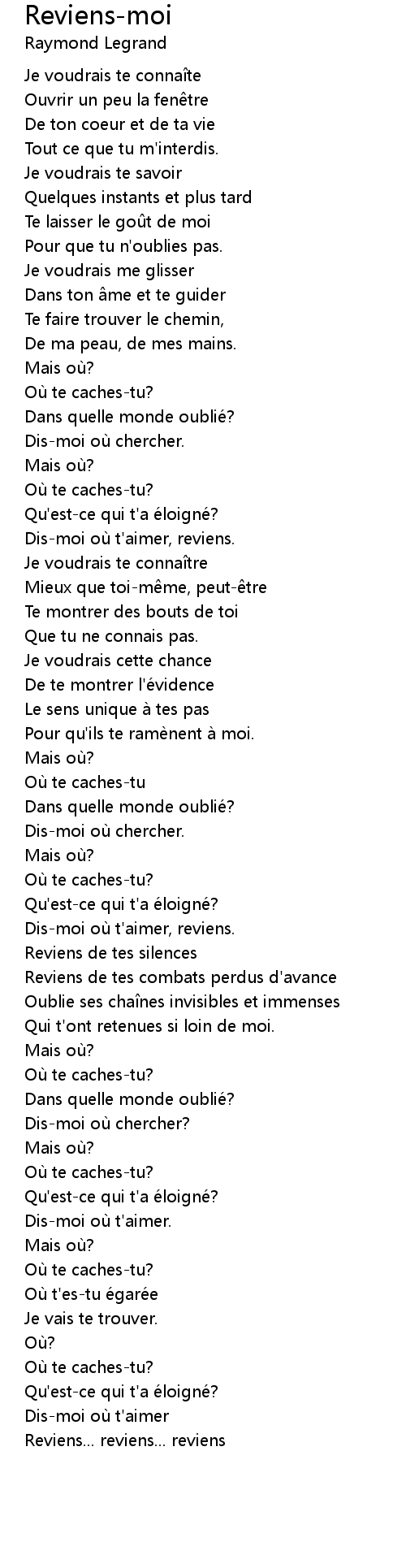 | [01:44.49] | Dis-moi où t'aimer, reviens. |