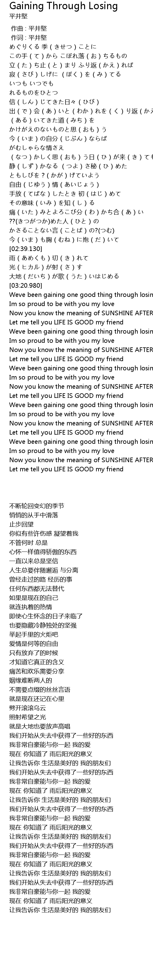 | [02:11.300] | 痛(いた)みとよろこび分(わ)かち合(あ)い |