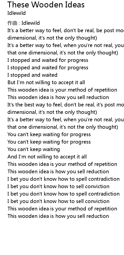 | It's the best way to feel, don't be real, it's post modern(It's not that one dimensional, it's not the only thought) | |