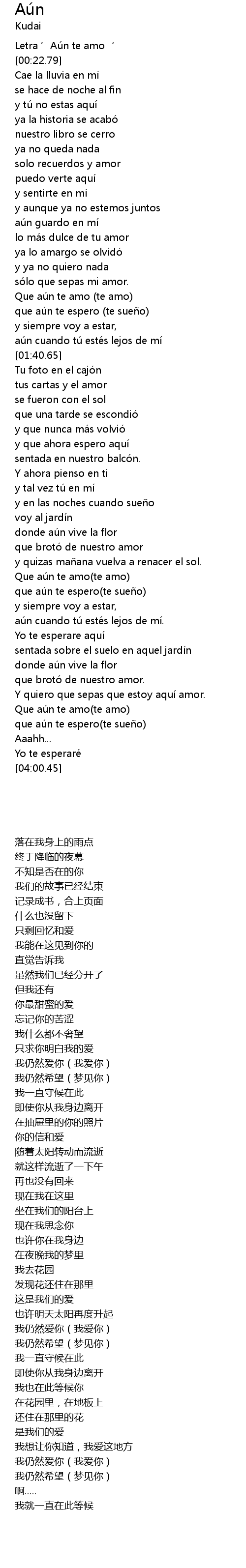 | [00:01.10] | Letra ’Aún te amo‘ |