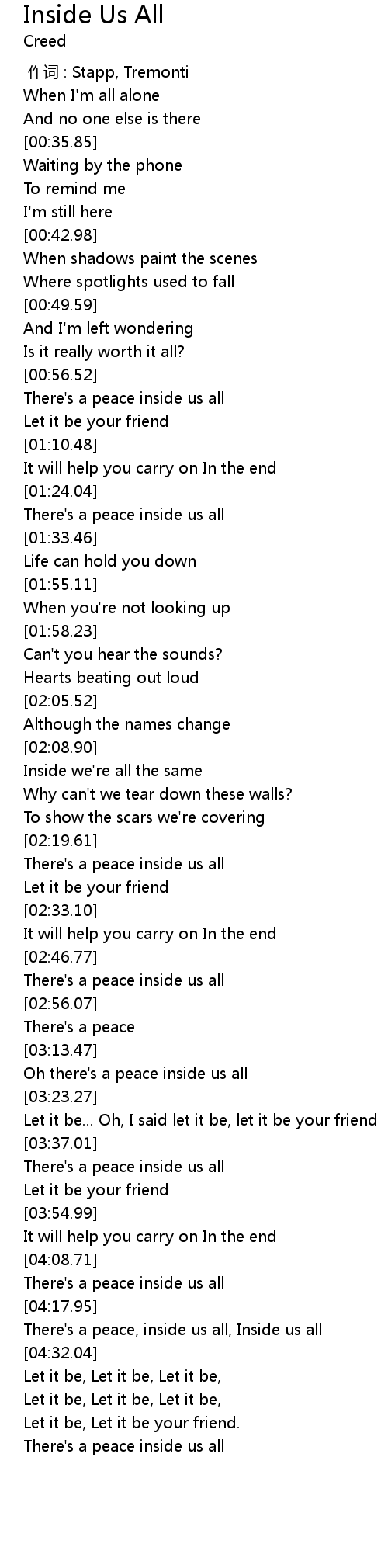 | [04:23.57] | There' s a peace, inside us all, Inside us all |