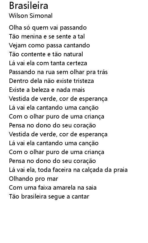 | Tão brasileira segue a cantar |