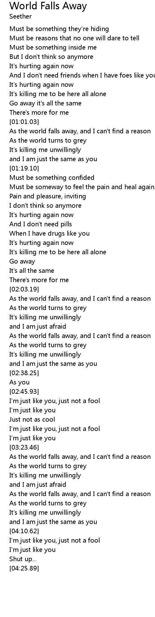 As the world falls away, and I can't find a reason |