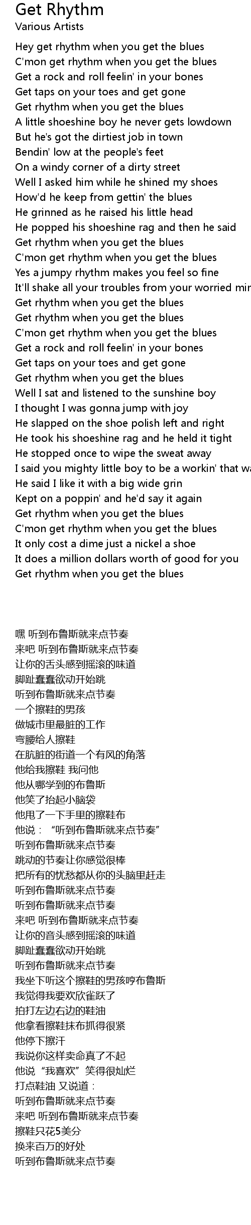 C'mon get rhythm when you get the blues |