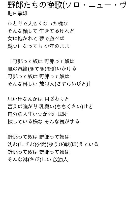 | Song | 野郎たちの挽歌(ソロ・ニュー・ヴァージョン) |