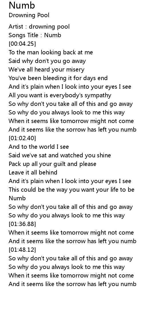 | [00:57.08] | And it seems like the sorrow has left you numb |