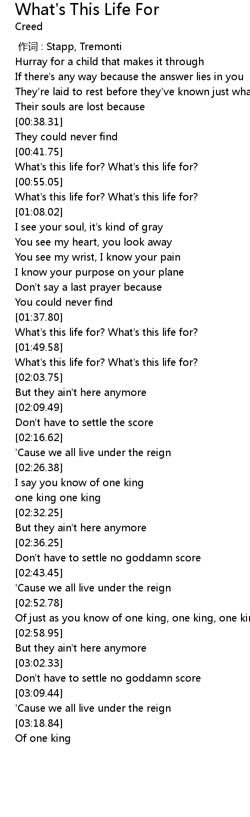 | [01:38.55] | What's this life for? What's this life for? |