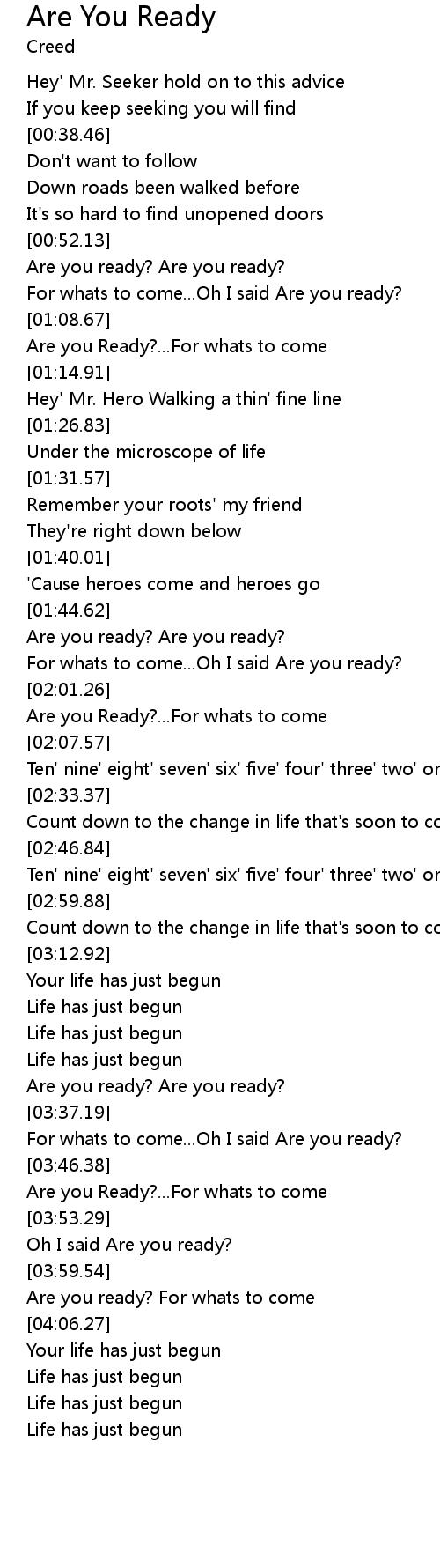 For whats to come...Oh I said Are you ready? |