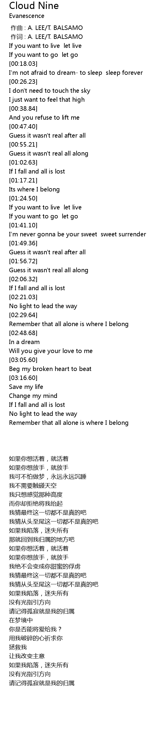 | [00:01.00] | 作词 : A. LEE/T. BALSAMO |