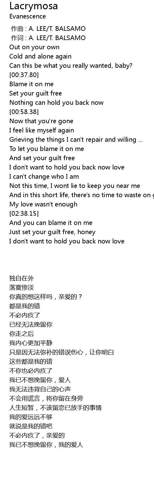 | [00:00.00] | zuo qu : A. LEE T. BALSAMO |