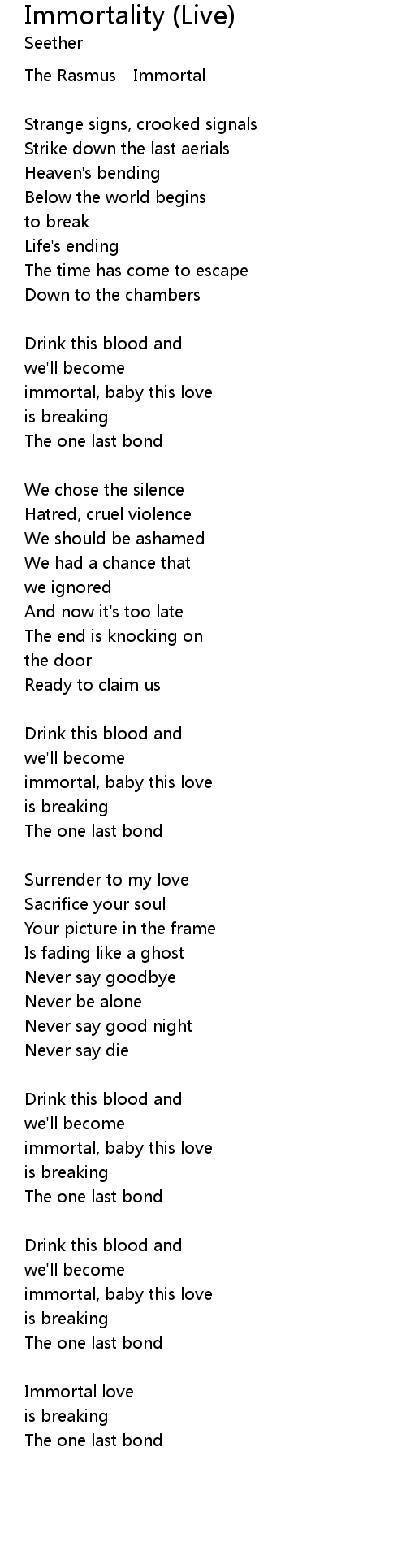 immortal, baby this love |