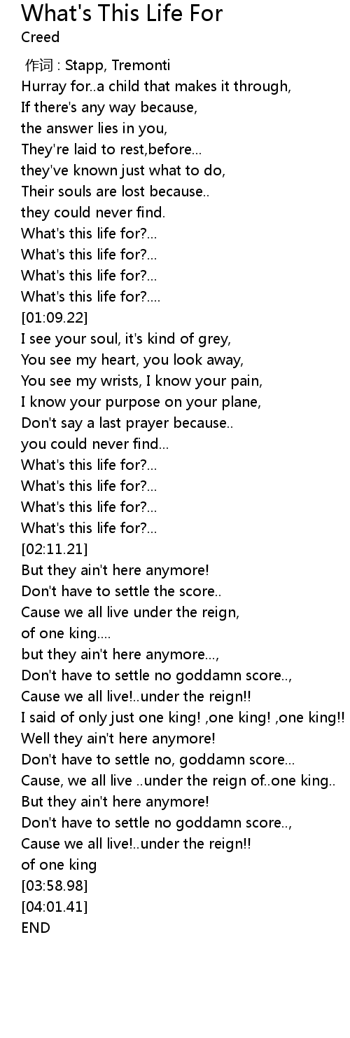 | [03:46.64] | Cause we all live!..under the reign!! |
