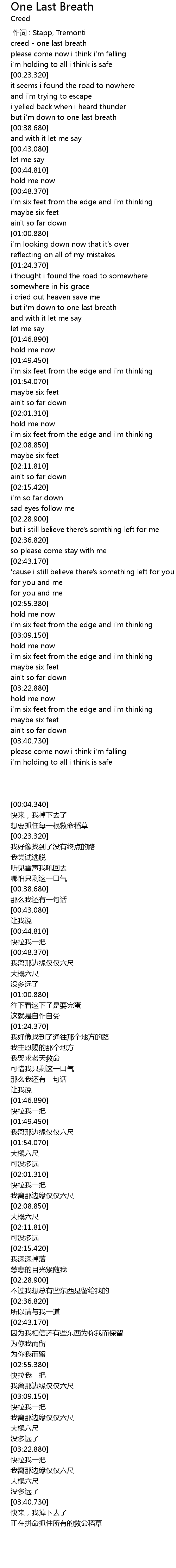 | [00:04.340] | creed one last breath |