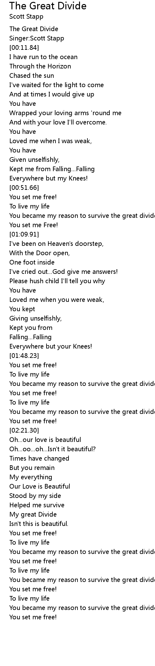 You became my reason to survive the great divide |