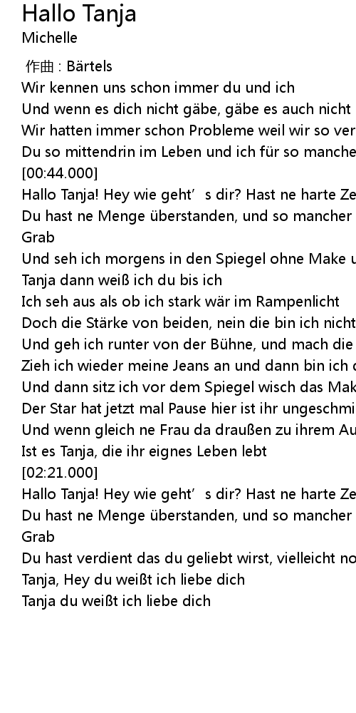 | [02:55.400] | Tanja du wei t ich liebe dich |