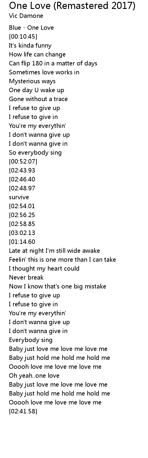 [03:19.11][02:58.85][02:13.77][01:08.17] One love oh I do believe