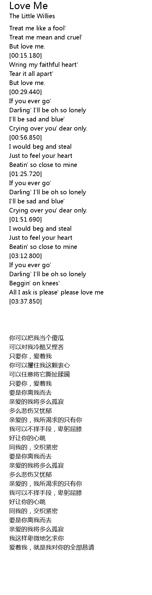 | [03:30.720] | All I ask is please' please love me |