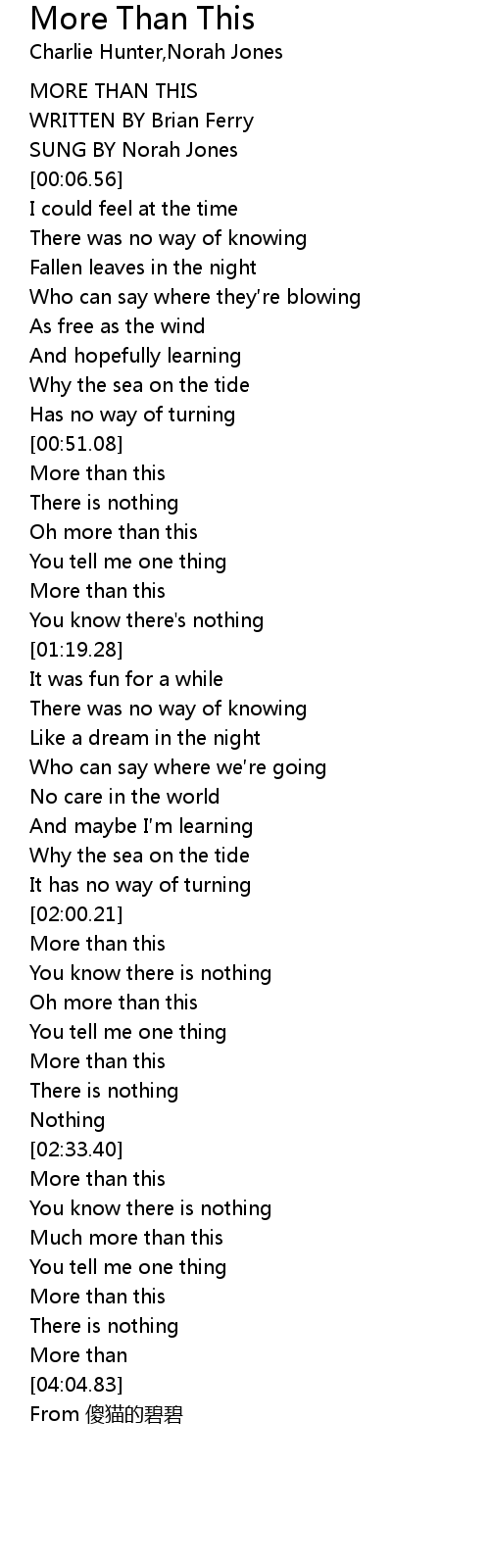 | [00:53.72] | More than this |