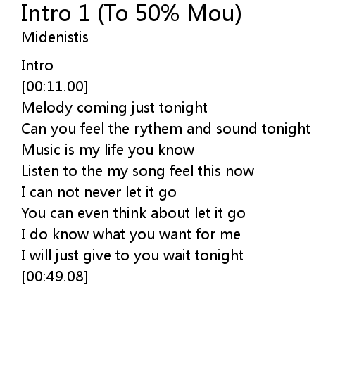| Song | Intro 1 (To 50% Mou) |