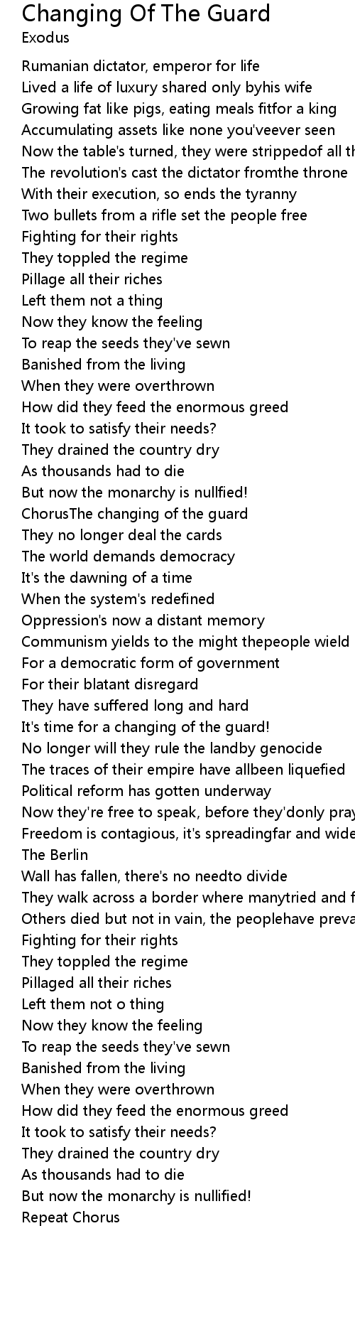 ChorusThe changing of the guard |